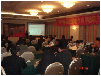 2007年1月19日ri,英ying威wei騰teng在zai福fu建jian泉quan州zhou地di區qu成cheng功gong舉ju辦ban產chan品pin推tui廣guang會hui,吸xi引yin了le來lai自zi磚zhuan機ji行xing業ye的de眾zhong多duo商shang家jia紛fen擁yong前qian來lai。他ta們men認ren真zhen聽ting取qu了le技ji術shu人ren員yuan的de講jiang解jie,並bing通tong過guo實shi樣yang機ji型xing參can觀guan、技術功能演示等方式,對英威騰的變頻器表示了濃厚興趣。