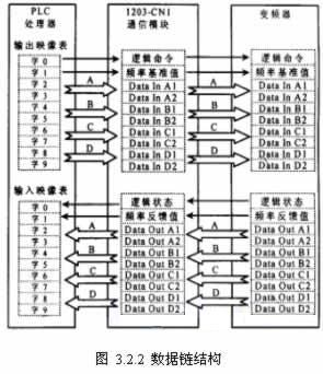 1203-CN1模塊和變頻器各有4個數據鏈A、B、C、D,每個數據鏈在處理器的輸入和輸出映像表中占用2個字,如A數據鏈在輸入映像表中占用字2和字3。可通過通信模塊的撥動開關來選通/截止某個數據鏈,如此,可通過數據鏈方式,PLC處理器每次可對變頻器讀或寫2—8個ge字zi的de數shu據ju信xin息xi。實shi際ji上shang數shu據ju鏈lian數shu據ju是shi要yao傳chuan送song數shu據ju信xin息xi的de指zhi針zhen。對dui於yu變bian頻pin器qi來lai說shuo,如ru要yao傳chuan送song某mou個ge參can數shu,則ze指zhi針zhen為wei該gai參can數shu的de參can數shu號hao。所suo以yi必bi須xu在zai變bian頻pin器qi中zhong對dui各ge個ge數shu據ju鏈lian進jin行xing組zu態tai,即ji決jue定ding數shu據ju鏈lian指zhi向xiang哪na個ge參can數shu。