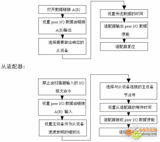 目前,眾多DeviceNet 上變頻器的網絡適配器均支持peer I/O 連接報文的傳送,如20-comm-D(PowerFlex係列變頻器),1203-GU6(1305,1336係列變頻器),1336-GM6內置適配器(1336係列變頻器)。本文所設計的多電機控製係統變頻器主從適配器間即采用peer I/O 報文進行數據傳送[1]。
