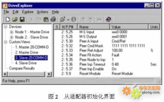 采用DriveExplorer軟件對主從多台變頻器及適配器進行參數設置,如圖2所示。