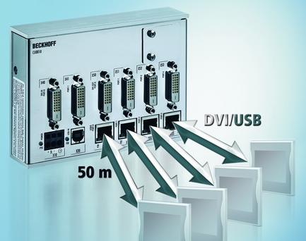 [2008 年 05月 19日,上海] 大型設備和大麵積的廠房增加了本地數據查詢的需求。Beckhoff 公司推出的 CU8810 DVI/USB分配器,外形極為緊湊,為連接多個顯示器提供了多種選項。一台 PC 可以連接多達 4 個擁有同樣分辨率的顯示器,能夠同時顯示一個相同的畫麵或兩個不同的畫麵。