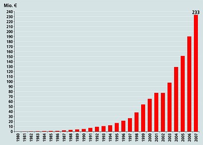 德國倍福自動化有限公司營業額增長走勢圖(1980至2007)