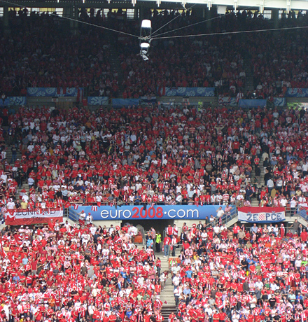 [2008 年 07月 23日,德國] 2008 年 6 月 7 日至 29 日,16 支歐洲頂級足球隊在奧地利和瑞士聯合舉辦的歐洲足球錦標賽(UEFA European Championship)上集結,在賽場上展開角逐。此次頂級賽事向全球 180 個國家進行現場直播。安裝於賽場上的 SpiderCam® 攝像機器人可全程實時記錄賽事畫麵。總共有 4 個歐洲杯足球場安裝了這種尖端的攝像係統:維也納的 Ernst Happel 體育場,薩爾茨堡的 Wals-Siezenheim 體育場,巴塞爾的 St. Jakob 公園球場,以及日內瓦的 Stade de Genève 球場。所有這些攝像係統都由 Beckhoff 基於 PC 的控製係統控製。
