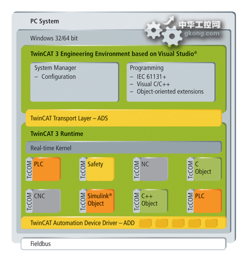 在 TwinCAT 3 和 eXtended Automation Technology(XAT)中包含靈活的基於 PC 的控製軟件,將顯著擴大標準自動化領域的潛力。除了基於麵向對象的 IEC 61131-3 標準語言擴展外,也可通過 C 和 C++ 使用 IT 領域的編程語言。此外,Matlab®/Simulink® 的de集ji成cheng能neng夠gou輕qing鬆song地di將jiang自zi動dong化hua與yu科ke學xue領ling域yu聯lian係xi起qi來lai。所suo有you這zhe些xie都dou可ke在zai一yi個ge靈ling活huo的de工gong程cheng環huan境jing中zhong實shi現xian。軟ruan件jian模mo塊kuai能neng夠gou在zai相xiang同tong的de運yun行xing時shi內nei以yi不bu同tong的de語yu言yan運yun行xing。這zhe種zhong模mo塊kuai化hua的de優you點dian在zai於yu,它ta能neng夠gou提ti高gao被bei編bian寫xie並bing測ce試shi後hou的de模mo塊kuai重zhong用yong性xing。運yun行xing時shi在zai所suo需xu的de實shi時shi條tiao件jian內nei運yun行xing,采cai用yong多duo核he技ji術shu,並bing支zhi持chi 32 或 64 位操作係統。