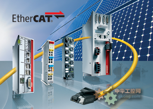 基於以太網的 EtherCAT 現場總線係統的拓撲結構靈活,非常適合用於光伏設備。例如,控製器與 I/O 信號之間的直接通訊(無需專用硬件)讓高精度多軸運動控製成為可能,這些軸可通過 EtherCAT 分布式時鍾實現同步,從而顯著改善控製質量,加快設備處理速度。