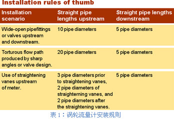 軸承選擇 有多種形式的軸承可供渦輪流量計選用,包括金屬及陶瓷滾珠軸承以及套筒式碳化鎢及陶瓷滾珠軸承等。 滾珠軸承通常具有最高的精度、最低的成本及最寬的使用範圍,因此它被用於眾多流體中。而碳化鎢及陶瓷滾珠軸承則在維修兼容流體中擁有最高的耐用性。 由於流體一般都能為軸承提供一定程度上的潤滑,因此它所提供的高自然潤滑可延長軸承的使用壽命。 對於那些流體隻能為軸承提供較少或完全不能提供自然潤滑的應用,則可使用Hoffer流量控製公司提供的帶自潤滑陶瓷滾珠軸承的單元。 無wu論lun流liu體ti是shi否fou能neng為wei渦wo輪lun流liu量liang計ji軸zhou承cheng提ti供gong潤run滑hua,廠chang商shang們men都dou能neng采cai用yong各ge種zhong不bu同tong技ji術shu來lai使shi軸zhou承cheng磨mo損sun最zui小xiao。例li如ru,滾gun珠zhu軸zhou承cheng單dan元yuan所suo包bao含han的de非fei金jin屬shu軸zhou承cheng護hu圈quan、硬度極高的碳化鎢及陶瓷滾珠等,都能使軸承的使用壽命延長。 zhouchengshoumingyuzhouchengsudupingfangjinsichengfanbi,yinci,weiyanchangwolunliuliangjideshiyongshouming,zuihaonengrangliuliangjigongzuozaijiaodiliusushang。liru,ruguoliuliangjizaiqizuidaliusude33%上工作,則軸承壽命大約可提高10倍。 對於采用滾珠軸承的流量計,建議每半年對軸承進行一次檢查。 安裝影響 像xiang大da多duo數shu流liu量liang計ji一yi樣yang,渦wo輪lun流liu量liang計ji的de精jing度du絕jue大da部bu分fen取qu決jue於yu正zheng確que的de安an裝zhuang以yi及ji能neng否fou確que保bao不bu產chan生sheng漩xuan渦wo的de運yun行xing條tiao件jian。甚shen至zhi在zai恒heng定ding流liu速su上shang,漩xuan渦wo都dou能neng改gai變bian流liu體ti衝chong擊ji轉zhuan子zi葉ye片pian的de角jiao度du,進jin而er改gai變bian轉zhuan子zi轉zhuan速su並bing因yin此ci而er改gai變bian液ye體ti流liu速su指zhi示shi。 通過在渦輪流量計上、下遊中安裝足夠長度的流體直通,可減少甚至完全消除漩渦效應。流體直通是一種直管與校正葉片的組合,或者像Vortab公gong司si的de流liu量liang調tiao理li器qi這zhe樣yang的de專zhuan用yong裝zhuang置zhi。用yong於yu液ye體ti流liu量liang測ce量liang應ying用yong的de渦wo輪lun流liu量liang計ji,在zai水shui平ping及ji垂chui直zhi兩liang個ge方fang向xiang上shang都dou能neng很hen好hao地di使shi用yong,但dan氣qi體ti流liu量liang測ce量liang應ying用yong則ze一yi般ban隻zhi要yao求qiu流liu量liang計ji在zai垂chui直zhi方fang向xiang上shang具ju有you精jing確que的de測ce量liang指zhi標biao。 當在斷續液體應用中使用時,建議將渦輪流量計安裝在管道中的較低位置上。 渦wo輪lun流liu量liang計ji一yi般ban設she計ji用yong於yu幹gan淨jing的de流liu體ti應ying用yong中zhong。在zai可ke能neng存cun在zai固gu體ti的de應ying用yong中zhong,建jian議yi安an裝zhuang篩shai網wang或huo過guo濾lv器qi。但dan由you於yu篩shai網wang或huo過guo濾lv器qi容rong易yi產chan生sheng漩xuan渦wo,因yin此ci建jian議yi將jiang其qi安an裝zhuang在zai直zhi通tong路lu徑jing中zhong的de上shang遊you位wei置zhi。