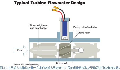 信號輸出 渦輪流量計所產生的信號,是一種峰-峰值電壓脈衝,而產生脈衝最常用的方法是利用磁阻原理。 zaicizuyuanlifangfazhong,ganyingxianquanwaibaoyicengyongciti,bingbeianzhuangzailiuliangjiwaimianjinkaozhuanzidebuwei。erzhuanzishangdemeiyigeyepian,dangtazhuanguoxianquanshidouhuiyinqicichangpianxie,erzhezhongcizubianhuayouhuizaiganyingxianquanzhongjiqidianyamaichong。 在(zai)過(guo)去(qu)幾(ji)年(nian)中(zhong),電(dian)子(zi)技(ji)術(shu)的(de)使(shi)用(yong)極(ji)大(da)地(di)提(ti)高(gao)了(le)渦(wo)輪(lun)流(liu)量(liang)計(ji)的(de)性(xing)能(neng),例(li)如(ru),每(mei)秒(miao)計(ji)算(suan)數(shu)千(qian)個(ge)脈(mai)衝(chong)的(de)能(neng)力(li)就(jiu)能(neng)極(ji)大(da)地(di)提(ti)高(gao)流(liu)量(liang)計(ji)的(de)測(ce)量(liang)精(jing)度(du)及(ji)範(fan)圍(wei)。 當安裝在電氣噪音環境中、或當渦輪流量計與電子設備之間的距離超過200英尺時,則有必要進行相應的信號調整。 應用舉例 除液體或氣體渦輪流量計較為傳統的工業應用外,Hoffer、Omega Engineering及Sponsler等公司也在成功地將其用於一些不太傳統的應用中,例如: ■ Viking Yachts公司生產各種遠洋遊艇,由於擔心在危險海域遇到燃料耗盡情況,因此Viking公司需要為其客戶提供有關遊艇航程的準確信息。在Sponsler公司幫助下,Viking公司現在已能準確地測量出遊艇柴油發動機在各種工作條件下的油耗情況,從而可幫助確保船長在不耗盡燃料的情況下安全進港。 ■ 將奶製品從牛奶場輸送至儲罐中,要求進行精確及可重複的密封輸送測量,並且還要求有很高的衛生條件。Omega公司的FTB係列及Sponsler公司的SP714,即是適合上述應用的精確及衛生的渦輪流量計,設計時即考慮到無需拆卸即能對內部元件進行徹底的清潔。 ■ 全球最大的石油天然氣儲量是在海底,但要探明這些儲量,需麵臨深度超過10,000英尺、內部工作壓強超過10,000psi、外部壓強超過5,000 psi以及溫度低於32 鸉的獨特挑戰。 Hoffer公司正在用專門設計的5/8及4英寸渦輪流量計來應對這些獨特的海底應用挑戰。迄今為止,渦輪流量計仍然是一種最為流行的流量測量方式,原因何在?因為它們能夠提供: ■ 寬測量範圍; ■ 出色的精度及低成本; ■ 允許與眾多過程流量一起使用的製造材料; ■ 結構簡單耐用且能進行現場維修; ■ 與用於流量控製及計算機進行接口的相關電子讀取設備連接的靈活性; ■ 寬範圍過程連接; ■ 寬工作溫度及壓強等。 蹼輪流量計是一種低成本替代方案 當精度不那麼重要時,蹼輪(Paddlewheel)流量計是較為昂貴的渦輪流量計的一種低成本替代方案。可用於插入式設計的蹼輪流量計傳感器,可適應達36英寸(914 毫米)的尺寸。