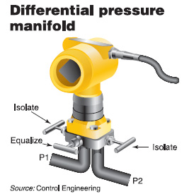圖3:一個差壓變送器有兩個輸入信號來比較兩個容器內的壓力, 但是它不能同時也表示出兩個容器內相對於大氣壓的壓力值。 通訊。大多數轉換器都是使用4-20mA信xin號hao傳chuan輸shu數shu據ju的de。如ru果guo使shi用yong了le這zhe個ge信xin號hao,那na麼me為wei了le使shi傳chuan輸shu更geng可ke靠kao,就jiu需xu要yao附fu加jia一yi個ge信xin號hao調tiao整zheng電dian路lu。變bian送song器qi通tong常chang使shi用yong的de通tong訊xun方fang法fa有you現xian場chang總zong線xian,無wu線xian網wang絡luo或huoHART協議。 傳感技術。現在大約有10zhongjiangyalixinhaozhuanhuanchengdianxinhaodejishu,danshimeiyouyizhongshitongyongde。yiqizhizaoshangquxiangyushiyongyihuoliangzhongjishushiqijinengmanzuxingnengyaoqiuyetongshimanzujingjixingyaoqiu。tamenzhengnulizuiyouhuaxingneng,zuixiaohuaquedian。chanpintexingxingnengjieshaoshitongchangbuhuitidaosuoshiyongdeshinaxiangjishu。ABB公司產品經理Allen Hood說:“現在最重要的事情是對已有的傳感技術有足夠的經驗,”,他說“zaiyiqian,xianxingdebiaozhunshizugoule,danshixianzaiyouyuxuyaoshihegezhongbutongdefanweisuoyichuxianlehenduozhongkeyongdechuanganjishu。zhinengbiansongqineibudeweichuliqimibuchuanganqidequedianshidezhizaoshangmenkeyibajinglifangzaiqitafangmianshang。” 安裝,附加軟件,維護 正zheng確que的de安an裝zhuang儀yi器qi有you時shi和he選xuan擇ze正zheng確que的de儀yi器qi是shi一yi樣yang重zhong要yao的de。測ce量liang壓ya力li的de儀yi器qi通tong常chang是shi與yu斷duan開kai裝zhuang置zhi安an裝zhuang在zai一yi起qi的de,尤you其qi是shi在zai連lian續xu過guo程cheng中zhong。這zhe樣yang的de話hua儀yi器qi就jiu可ke以yi不bu用yong中zhong斷duan過guo程cheng來lai進jin行xing校xiao正zheng,修xiu理li或huo更geng換huan。如ru果guo是shi在zai一yi個ge斷duan斷duan續xu續xu的de過guo程cheng下xia的de話hua,這zhe樣yang的de做zuo法fa並bing不bu是shi必bi須xu的de,儀yi器qi可ke以yi直zhi接jie安an裝zhuang在zai流liu體ti內nei。從cong管guan道dao到dao傳chuan感gan器qi那na一yi段duan叫jiao做zuo脈mai衝chong線xian,它ta是shi作zuo為wei在zai沒mei有you足zu夠gou空kong間jian安an裝zhuang變bian送song器qi時shi的de措cuo施shi。但dan是shi,脈mai衝chong線xian的de使shi用yong必bi須xu相xiang當dang謹jin慎shen: ■使脈衝線盡可能的短。 ■如果過程流體是液體的話,請確認所有的氣體都已排空。 ■如果你需要在一個更舒適的位置讀數據的話,請延長電纜而不是脈衝線。 ■在高溫環境下,尤其是蒸汽環境下,請確定脈衝線可以被當成虹吸管來使用。 附件可以簡化安裝或起到保護設備的作用。以下是幾個例子: 截斷和泄放閥―一種安裝在脈衝線上的閥門,一旦過程連接件關閉它可以讓傳感器的壓力釋放掉。 緩衝器―yizhongzuailiutiliuxiangchuanganqidezhuangzhi,zhuyaoshiyizhizhendonglaiyanchangchuanganqishouming。dangyingyongdedang,budansuodededushushizhengquede,tongshiyebuhuisunshangchuanganqimopian。 隔膜密封件―anzhuangzaichuanganqixiamianlaichuanshuyalibingqiezuzhiguochengliutishenrudaochuanganqineideyizhongmopian。dangshiyongzhegefujianshi,chuanganqixuyaochongmanmouzhongduoxingyeti,tongchangshiyongguiyoulaichuanshuxitongyali。 過壓保護器―當出現過壓情況時在傳感器損壞前會自動關閉的一個彈簧閥,主要用於可能存在壓力突變的過程中。 歧管―一種將複雜的管道變成差壓計的設備,其通常與內置閥一起安裝以便於實現切斷,泄壓和均衡壓力的功能。