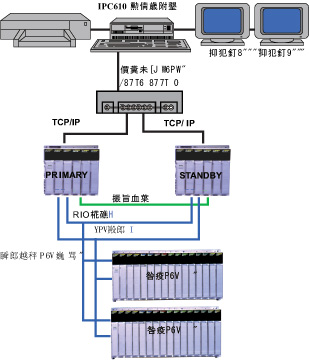 圖4 係統的曆史趨勢顯示畫麵 熱備係統硬件網絡的構成 根據對PLC係統和編程和上位監控係統的選擇,確定整個控製係統的硬件網絡結構。控製係統由研華IPC610工業計算機一台,EPSON LQ1600KIII打印機一台,PHILIPS201P顯示器兩台,WINFAST多屏卡一塊等構成,其網絡結構如圖5所示。其中,PLC係統為雙機雙纜冗餘熱備係統,其主機IP為100.100.100.35和100.100.100.36,Quantum 本地(Local)站一個,遠程(Remote)站兩個,PLC主機與工控機之間采用TCP/IP通訊協議,工控機IP地址為100.100.100.37。 熱備係統CPU的軟件組態 使用Concept軟件來組態項目,在創建一個新的項目的時候,需要指定選項IEC Hot Standy選項。指定此選項的目的就是為了安裝相應的熱備係統支持程序到控製器中,在Concept V2.6版本中,這些支持程序是和Concept軟件綁定在一起的,在選中IEC Hot Standy 項目後就已經激活了相應的程序,如圖6,圖7所示。