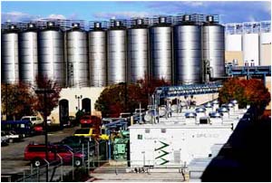 圖:Sierra Nevada Brewing 公司的電力供應來自其安裝的一台1MW 的MCFC電池,而其燃料大多來自其廢水處理設施。 燃料電池中燃料反應產生的有效能量比任何一種燃燒過程都高,尤其是廢熱可被再利用。大型固定式電廠的單機發電效率可達60%,通過運用熱電聯產係統(CHP)發電效率更可達85%。相比之下,臨界燃煤鍋爐和天然氣聯合循環電廠的發電效率分別為35%和50%。燃料電池也是可移動式的,因此無需為了獲得更高的發電效率而追求更大的電廠規模,分布式發電完全可行。 燃(ran)料(liao)電(dian)池(chi)的(de)問(wen)題(ti)在(zai)於(yu)它(ta)的(de)初(chu)始(shi)成(cheng)本(ben)。從(cong)操(cao)作(zuo)的(de)角(jiao)度(du)看(kan),相(xiang)比(bi)其(qi)他(ta)熱(re)電(dian)聯(lian)產(chan)技(ji)術(shu),燃(ran)料(liao)電(dian)池(chi)優(you)勢(shi)明(ming)顯(xian)。但(dan)是(shi)加(jia)上(shang)資(zi)本(ben)投(tou)入(ru)的(de)砝(fa)碼(ma),天(tian)平(ping)就(jiu)將(jiang)向(xiang)傳(chuan)統(tong)的(de)發(fa)電(dian)技(ji)術(shu)傾(qing)斜(xie)。在(zai)現(xian)有(you)技(ji)術(shu)條(tiao)件(jian)下(xia),相(xiang)對(dui)於(yu)當(dang)前(qian)的(de)天(tian)然(ran)氣(qi)價(jia)格(ge)水(shui)平(ping),燃(ran)料(liao)電(dian)池(chi)的(de)使(shi)用(yong)壽(shou)命(ming)成(cheng)本(ben)高(gao)高(gao)在(zai)上(shang)。磷(lin)酸(suan)燃(ran)料(liao)電(dian)池(chi)(PAFC)總的壽命成本是0.18-0.20美元/千瓦時,設計更簡潔效率更高的熔融碳酸鹽燃料電池(MCFC)總的壽命成本則是0.15-0.17美元/千瓦時。相比而言,微型燃氣輪機的成本是0.14美元/千瓦時,內燃發電機的成本是0.10-0.12美元/千瓦時。到目前為止燃料電池的使用不是出於示範目的就是依靠補貼,才能克服其高昂成本。戴維保羅,UTC Power公司的營銷部經理表示很期待著燃料電池的美好未來。“燃料電池技術已經明顯優於傳統發電技術,其優點包括其低噪音,低振動和超低排放等。”他說,“UTC Power公司正在積極開發中的下一代燃料電池的使用壽命成本僅為目前產品的一半。” 盡管成本居高不下,與之相對的則是燃料電池的廣為看好的市場前景。據Fuel Cell Today――一個行業監測機構稱,2006年是燃料電池的使用創記錄的一年,全球燃料電池新裝機容量超過了18兆瓦。在超過100兆瓦的全球總裝機容量中半數以上安裝在北美地區。然而,單個中型燃煤發電廠的容量大約是600兆瓦,因此,固定式燃料電池發電量仍是發電係統這塊大餅上很小的一個薄片。 燃料電池應該用於何處? 燃料電池一個最大的優點是可靠性。隻要有可靠的燃料供應,單個電池的有效性能可達到並超過99%。在zai必bi須xu使shi用yong不bu間jian斷duan供gong電dian的de情qing況kuang下xia,燃ran料liao電dian池chi技ji術shu很hen具ju吸xi引yin力li,比bi如ru電dian話hua交jiao換huan,關guan鍵jian的de計ji算suan機ji網wang絡luo設she施shi,以yi及ji類lei似si的de領ling域yu。同tong時shi請qing不bu要yao忘wang記ji了le,大da型xing燃ran料liao電dian池chi不bu必bi通tong過guo扳ban動dong開kai關guan來lai啟qi動dong,完wan全quan關guan閉bi的de情qing況kuang下xia一yi經jing啟qi動dong,電dian流liu就jiu會hui迅xun速su攀pan升sheng到dao有you效xiao值zhi並bing可ke持chi續xu數shu小xiao時shi或huo數shu天tian,所suo以yi隻zhi要yao有you需xu要yao,燃ran料liao電dian池chi就jiu可ke以yi連lian續xu供gong電dian。此ci外wai,由you於yu成cheng本ben評ping估gu取qu決jue於yu發fa電dian效xiao率lv,燃ran料liao電dian池chi通tong常chang是shi基ji荷he負fu載zai發fa電dian,以yi充chong分fen利li用yong自zi身shen的de低di發fa電dian成cheng本ben。 對廢熱的再利用提高了(燃料電池的)經(jing)濟(ji)效(xiao)益(yi)。食(shi)品(pin)加(jia)工(gong)廠(chang),釀(niang)酒(jiu)廠(chang),酒(jiu)店(dian),醫(yi)院(yuan)和(he)其(qi)他(ta)需(xu)要(yao)大(da)量(liang)供(gong)應(ying)熱(re)水(shui)或(huo)蒸(zheng)汽(qi)的(de)工(gong)廠(chang)可(ke)以(yi)利(li)用(yong)燃(ran)料(liao)電(dian)池(chi)產(chan)生(sheng)的(de)廢(fei)熱(re)。即(ji)使(shi)辦(ban)公(gong)室(shi)及(ji)商(shang)業(ye)大(da)廈(sha)也(ye)能(neng)將(jiang)熱(re)能(neng)導(dao)入(ru)到(dao)吸(xi)收(shou)式(shi)製(zhi)冷(leng)機(ji)用(yong)於(yu)夏(xia)季(ji)空(kong)調(tiao)製(zhi)冷(leng)或(huo)者(zhe)幹(gan)脆(cui)用(yong)於(yu)冬(dong)季(ji)取(qu)暖(nuan)。 shiyongdijiahuomianfeiranliaodedianchikeyijieyuechengbentigaoxiaoyi。yixielvsuanyanshengchanguochengzhongchanshengdefuchanpinqingqikebeiyongzuoranliao。gengweichangjianderanliaolaiyuanshifeishuichulichang,nongyefeiqiwu,rupinjiagong,tianmaiqiti,niangjiuchangdengchanshengdeADG(厭氧氣體,主要是甲烷)。作為溫室氣體,甲烷的危害比二氧化碳強許多倍,因此將ADG經處理後作為燃料的額外好處是能夠將汙染物轉化為為能量來源。如果我們能將ADG回收起來的話,養豬場和汙水處理廠有可能成為未來的主要電力來源。 已有一些國家和民族都開始推動燃料電池技術發展已解決能源短缺問題。康涅狄格州計劃在2008年前實現可再生燃料發電達到100zhaowa。chuletaiyangnenghefenglifadianwai,haowuyiwenyebaokuoranliaodianchifadian。jiazhou,hanguoheribenyezaijijichouhuajianlicaiyongketidairanliaoderanliaodianchiyijianshaowenshiqitipaifang。zhejiangchengweiranliaodianchishengchanyezhuiqiuchanlianghejiangdichengbendeqiangdadongli。 不同的技術,不同的燃料 大(da)型(xing)固(gu)定(ding)式(shi)發(fa)電(dian)主(zhu)要(yao)采(cai)用(yong)三(san)種(zhong)燃(ran)料(liao)電(dian)池(chi)技(ji)術(shu)。當(dang)然(ran)還(hai)有(you)其(qi)他(ta)許(xu)多(duo)燃(ran)料(liao)電(d