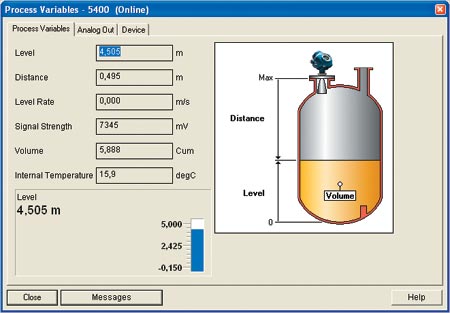 圖2:2 號主機上的雷達液位計 1992年HART通訊基金會(HCF)發現許多用戶希望通過數字接口獲得數據,所以他們就將EDDL標準化,使主機控製係統接收到的是程序格式的信息描述。1994年,現場總線基金會(FF)采用了EDDL標準,接著Profibus也采用了EDDL,但是這3個組織各自獨立支持該技術,而且支持的方式也有一些不同。2003年這3個組織,HCF、FF以及Profibus Nutzerorganisation e.V.(PNO)開始合作並向IEC遞交了統一的EDDL版本,並使它成為2004:IEC1804-2的國際標準。這為在支持不同廠商不同通訊協議的現場設備的主機中創建單一工程環境打下了基礎。互操作性更強了。 通過三方―FF, HCF and PNO―的合作,EDDL得到了迅速地增強,用戶界麵和設備診斷的互操作概念也得到了延伸。EDDL的增強功能已遠遠超越了設備的組態功能。如今,增強的EDDL可實現設備診斷、資產管理、用戶界麵顯示、柱狀統計圖、趨勢圖、設備簽名和曆史記錄功能。 2005年OPC基金會宣布在其統一架構(UA)中采用EDDL作為描述技術。這樣OPC基於UA的軟件就可以與現場總線設備通訊―再加上在以太網及其它網絡上運行的設備,或是在除Windows以外的操作係統中運行的設備―使用EDDL的描述就可以獲得設備的數據。互作性的範圍更廣了。 這些增強的功能不會對描述文件產生任何影響,所以來自於現場1500萬台支持EDDL的設備(再加上新的現場儀表)的數據可以很方便地獲取。EDDL可向後兼容到1990年的數據。既然現在市場上的控製係統都可以與資產管理軟件通訊,這也就意味著所有的EDDL數據可用於任何用途,從儀表組態到ERP。 例如,在2005年的ISA展覽會上,現場總線基金會展出了一套集多家廠商於一體的演示係統,它充分體現了EDDL的功能。艾默生過程管理、恩德斯豪斯、西門子和Smar公司展示了壓力變送器、溫度變送器和機械設備狀態變送器,並將所有設備信息傳遞到設備管理係統,對這些設備進行診斷、標定和組態。 減少多餘的軟件 有一個問題總是困擾著最終用戶,要維持現代過程控製係統的運行,就要麵對層出不窮的軟件。EDDL可免除大部分軟件的使用。例如,基於HART通訊的羅斯蒙特5400雷達液位計以前需要用額外的軟件來查看儲罐特性,然後才可以進行先進組態。現在5400將所有必要的數據都包含在EDDL中,因而就不再需要額外的特定軟件了。 另外一個例子是基於基金會現場總線的艾默生CSI9210機械設備狀態變送器,它可對電機泵軸承故障、泵的氣蝕現象和軸心未對中等複雜設備狀態進行診斷,而無需特殊軟件。所有的設備信息都在電子設備描述文件中(EDD),隻要使用現場總線基金會的翻譯器就可在任何係統中顯示這些信息。 如果係統必須依靠專用軟件,那麼就很容易由於操作係統的升級、更新、控(kong)製(zhi)係(xi)統(tong)的(de)版(ban)本(ben)或(huo)是(shi)新(xin)的(de)設(she)備(bei)軟(ruan)件(jian)的(de)版(ban)本(ben)而(er)發(fa)生(sheng)故(gu)障(zhang)。當(dang)這(zhe)些(xie)專(zhuan)用(yong)軟(ruan)件(jian)的(de)供(gong)應(ying)商(shang)與(yu)係(xi)統(tong)供(gong)應(ying)商(shang)不(bu)是(shi)同(tong)一(yi)家(jia)時(shi),問(wen)題(ti)就(jiu)會(hui)變(bian)得(de)更(geng)為(wei)複(fu)雜(za)了(le)。采(cai)用(yong)EDDL,許多這樣的問題就可以避免,因為EDDL是基於文本的,它獨立於任何操作係統和控製平台。主機係統可能改變,但是現場設備是不變的。隻有設備變了,EDD才會變。 所以,要使控製係統盡可能避免軟件版本和操作係統升級的辦法是在獲取組態、診斷、用戶接口和資產管理數據時采用EDDL,而隻在必要時使用專用軟件。 推動用戶接口 在有些案例中,用戶界麵軟件包括曆史數據、SCADA軟件,或是實時數據庫。如果用戶要對界麵進行創建並設置,他們必須指出變量是什麼,它們在I/O中的位置,它們代表什麼以及它們在屏幕上應該如何顯示。在設置監測和診斷特定設備的屏幕顯示時,這種問題尤為突出。 采用EDDL設備供應商隻要寫出EDDL規範來定義變量,這些變量應該以什麼樣的順序排列,在何種情況下需要顯示等。事實上,用戶甚至不用對顯示進行設置,EDDL會生成設備的顯示。 圖1顯示了雷達液位計的用戶界麵屏幕。數據直接從EDDL獲得,無需修改和組織。它體現了變送器廠家對於數據顯示方式的想法。圖2表現的是相同的數據,相同的EDD文件,但是在不同的主機上。在不同顯示風格的“所見即所得”界麵下,提供了相同的信息。 huanjuhuashuo,zhujikongzhixitongjuedingruhexianshi,ershebeijuedingxianshishenmeneirong。zhejiuquebaolewulunshuishishebeigongyingshang,zaitongyigeguochengkongzhixitongzhongdexianshiyongyouxiangtongdeganguan,zai1號主機中,“關閉”、“信息”以及“幫助”按鈕是獨有的。而在2號主機中,“確認”、“取消”、“應用”和“幫助”按鈕以及左側的導航欄也是它獨有的。“過程變量”標簽中的信息在2台主機中是一樣的,它來自於EDD文件。雖然在每台主機係統上的顯示略有不同,但內容是一樣的。