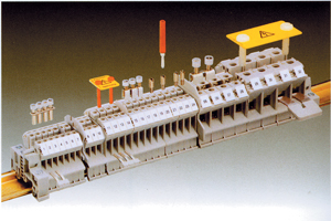 RCT係列組合型接線端子排產品設計新穎,結構合理,其定位座部分的特殊設計,能方便快速地將每一極端子既可以安裝在RTR35x7.5型,也可安裝在RTR32x15型的標準安裝軌上;封閉形的螺釘引導孔,既能方便普通螺絲刀的操作,又可防止螺釘旋鬆後跌落機外;通過接入端子中央的中心聯絡件或插入錐形接線孔的側聯梳可實現端子間的電位分配,頂部兩端采用白色標記係統,實現統一標識;絕緣外殼的材料采用PA66。