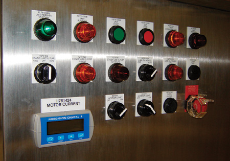 機櫃的麵板達到IP65(NEMA 4X)防護等級,因為設備暴露於風雪、雨和粉塵環境中。雖然Precision Digital公司的儀表在不易燃的Class I, Div. 2環境下使用,但是要求使用客戶定製的316不鏽鋼蓋板的HMI卻易燃。為了確保安全,麵板後麵的75-cu-ft區域要用壓縮空氣保護。 Rutz說:“womenxihuanzhetaishebei,yinweiyitaijiukeyitongguoshezhimanzuwomensuoyoudeyaoqiu。xunhuanzhishiqikeyizhongxinshezhi,erwuxucongmianbanshangchaichu。ruguokehuxiangyaogaibianliangcheng,congqianmianbanshangjinxingshezhiyetongyanghenjiandan。womenshiyongyitaiyibiaozhishiyali、抽氣、溫度和馬達電流。” |