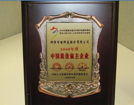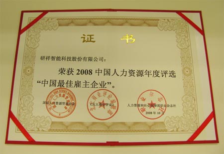 2008年10月25日,第五屆中國人力資源管理年度盛典暨2008中國人力資源年度評選頒獎典禮在北京大學百年大講堂隆重舉行。研祥榮獲“中國最佳雇主企業獎”。