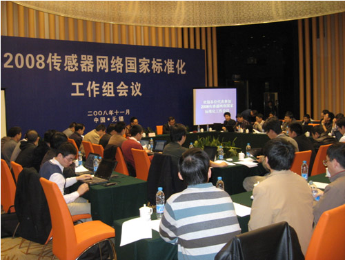 2008年11月27-28日(ri),傳(chuan)感(gan)器(qi)網(wang)絡(luo)國(guo)家(jia)標(biao)準(zhun)化(hua)項(xiang)目(mu)組(zu)會(hui)議(yi)在(zai)無(wu)錫(xi)新(xin)區(qu)創(chuang)意(yi)時(shi)尚(shang)大(da)酒(jiu)店(dian)舉(ju)行(xing)。來(lai)自(zi)全(quan)國(guo)各(ge)地(di)四(si)十(shi)多(duo)家(jia)單(dan)位(wei)的(de)六(liu)十(shi)多(duo)位(wei)知(zhi)名(ming)專(zhuan)家(jia)彙(hui)聚(ju)一(yi)堂(tang),共(gong)商(shang)傳(chuan)感(gan)器(qi)網(wang)絡(luo)標(biao)準(zhun)化(hua)規(gui)劃(hua)。會(hui)議(yi)由(you)全(quan)國(guo)信(xin)息(xi)技(ji)術(shu)標(biao)準(zhun)化(hua)技(ji)術(shu)委(wei)員(yuan)會(hui)主(zhu)辦(ban),中(zhong)國(guo)科(ke)學(xue)院(yuan)上(shang)海(hai)微(wei)係(xi)統(tong)與(yu)信(xin)息(xi)技(ji)術(shu)研(yan)究(jiu)所(suo)承(cheng)辦(ban)。