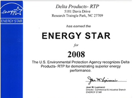 2008年11月,台達電子集團美國分公司位於北加洲三角研究園區(Research Triangle Park, NC)的業務及研發辦公大樓(DPC)榮獲美國環境保護局(Environmental Protection Agency)所頒發的“2008節能之星大獎”(Energy Star 2008 award)!獲得到此獎項證明了DPC的這棟辦公大樓正式濟身全美“最有效節能辦公大樓”的行列。