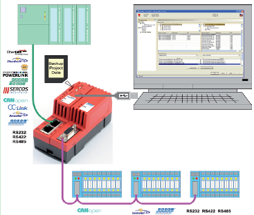 netTAP100充分應用了赫優訊百分百知識產權netX網絡控製芯片(SoC)的靈活性特點,提供了一種經濟、有效的解決方案,利用“模塊化”思想,變協議轉換產品傳統的“乘法”為“加法”,將不同協議的硬件底板嵌入到非常緊湊的DIN導軌安裝外殼中,通過協議堆棧軟件實現各種不同協議之間的轉換。包括不同現場總線主從站之間(PROFIBUS、CANopen、DeviceNet和CC-Link等)、現場總線主從站與實時以太網主從站之間、不同實時以太網主從站之間(EtherCAT、Ethernet/IP、Modbus TCP、Powerlink、PROFINET和SERCOS III)、現場總線主從站與串口之間、實時以太網主從站與串口之間的互轉。