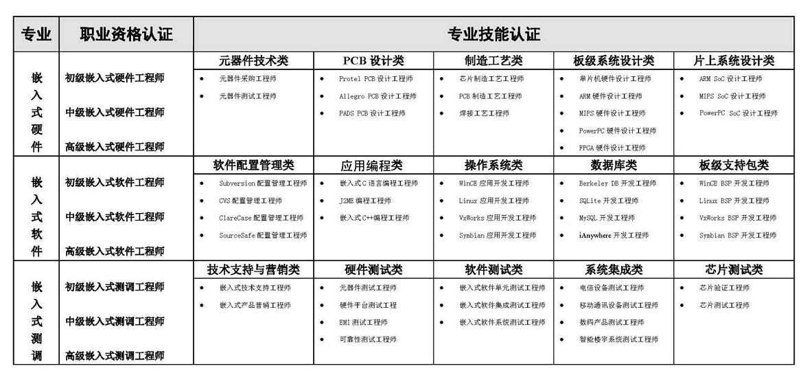 “嵌入式係統工程師行業認證”體係,如圖1所示: