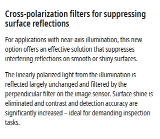 Option for all area scan camera units: VUI2000-POL09 cross-polarization filters