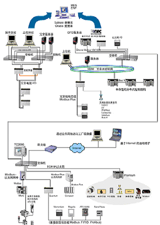 下圖為水泥廠DCS控製係統及MIS管理係統原理示意拓撲圖: