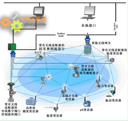 最zui新xin版ban本ben的de係xi統tong都dou帶dai有you無wu線xian網wang關guan的de本ben地di接jie口kou,先xian進jin的de無wu線xian網wang關guan可ke以yi自zi動dong進jin行xing感gan應ying和he組zu態tai,使shi網wang絡luo的de開kai車che和he調tiao試shi又you快kuai又you方fang便bian。此ci外wai,來lai自zi於yuHART和 WirelessHART設備的預警信息可通過無線網關直接供預測維護軟件使用,無需再另外搭建網絡。