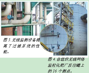 在一家磷肥廠中,自組織網狀網絡精確地將來自於250英尺外反應罐上的16台壓力及溫度測量點的讀數以每分鍾一次的更新頻率傳遞到中控室(圖4)。遠程儲罐高40英尺,內部有4cengbutongdefanyingchuangyubutongdeguochenghuaxuewuzhijinxingfanying。jinguanzhebingbushuyuweixianquyu,danshichuguandefenbuhejulihuishibuxianfeichangkunnanerqiechengbenhengao。gongchangdeDCS專家說:“自組織網絡結構在這項應用中起到了決定性的作用, 我們已經計劃增加更多的設備來搭建無線網絡。”
