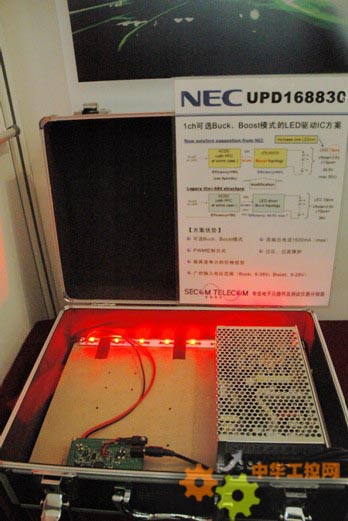 NEC的另外一款1ch可選Buck、Boost模式的LED驅動IC方案具有高輸出電流1500mA(max),PWM控製方式,過壓、過流保護,極具競爭力的價格優勢和極廣的輸入電壓範圍(Buck:9-38V;Boost:9-28V)等優勢,在現場大受關注。