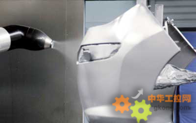 聚集噴射塗料的特點使EcoBell2 HD型霧化器還可以應用於其他場合,如噴塗塑料的裝飾部件(見圖5),zhezhongbujianwangwangxingzhuangfuza,erqiezhiyouhenxiaodemianjixuyaopentu。youyuzhezhongwuhuaqijuyougaodudelinghuoxing,suoyinenggoushiyingbujianfuzadewaixing,youxiaodijinxingpentu。tu6所示曲線表示在汽車發動機的機艙內噴塗時霧化器的運動軌跡。