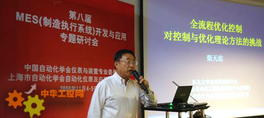 中國工程院院士柴天佑教授一直關心和支持我們這個研討會,在百忙之中專程來滬,作了題為《全流程優化控製對控製與優化理論方法的挑戰》的專題報告。他分析了從局部優化、動態優化到實現全局優化的整個優化控製過程中的數據調和、模型更新和穩態優化與校驗;指明了未來的發展方向是在市場需求、節能降耗和環保等約束條件下,實現基於數據和知識的企業生產製造全流程運行綜合指標的智能優化決策方法。他深刻指出,MES積累了生產管理專家、信息技術專家、自(zi)動(dong)化(hua)專(zhuan)家(jia)和(he)設(she)備(bei)維(wei)護(hu)專(zhuan)家(jia)等(deng)多(duo)方(fang)麵(mian)的(de)知(zhi)識(shi)和(he)智(zhi)慧(hui),將(jiang)管(guan)理(li)人(ren)員(yuan)從(cong)繁(fan)重(zhong)的(de)人(ren)工(gong)勞(lao)動(dong)中(zhong)解(jie)脫(tuo)出(chu)來(lai),以(yi)實(shi)現(xian)全(quan)流(liu)程(cheng)的(de)生(sheng)產(chan)控(kong)製(zhi)和(he)優(you)化(hua)為(wei)目(mu)標(biao),必(bi)將(jiang)成(cheng)為(wei)最(zui)優(you)秀(xiu)的(de)管(guan)理(li)者(zhe)中(zhong)的(de)佼(jiao)佼(jiao)者(zhe)。他(ta)還(hai)強(qiang)調(tiao)“技術創新帶動學術發展”的觀點,增強了廣大中青年技術人員探索技術創新信心,鼓舞了幹勁。報告時間不長,由淺入深、引人入勝、給人啟迪。