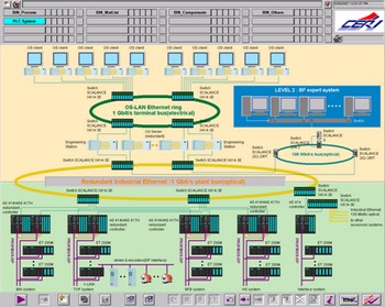 weilemanzushengchangongyigexiangkongzhigongnengyaoqiu,quebaogaoluanquanshengchan,xiangmucaiyongliangjizidonghuakongzhixitong,wanchengduigaoluzhugongyixianjizhuyaofuzhusheshidekongzhi。diyijiweijichuzidonghuaji,youdianqichuandongzidonghuaheyibiaozidonghuaxitongzucheng,zhuyaowanchengshengchanguochengdeshujucaiji、數據顯示、執行對生產過程的連續調節控製和邏輯順序控製、設備狀態監視及故障報警;第二級為過程控製級,主要完成數據處理、數據庫建立和生產報表的管理與打印,完成與其它計算機進行數據通信等工作。工程選用了PCS 7控製器15套,其中417H冗餘控製器4套,共計近8000點I/O。基於PCS 7這個核心支柱,承鋼遵循了西門子公司全集成自動化TIA的理念,在PCS 7這個高度集成和開放的領先平台之外,配備了SCALANCE係列的網絡產品,網絡層主幹環網為千兆以太網。係統主要包括冗餘AS控製器4套,標準AS控製器11套,具有熱插拔功能的ET-200M單元62套,SCALANCE各係列交換機21台。