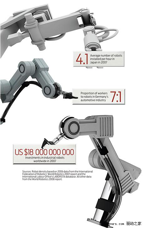 據美國電氣和電子工程師協會(IEEE)統計,至2008年底,世界各地已經部署了100萬台各種工業機器人。其中,日本機器人數量據世界首位。