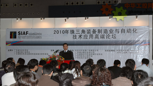 gkong網訊 為了貫徹廣東省政府“建立創新型廣東”的精神,推進廣東省自動化裝備與係統的應用和自動化學科的發展,3月10日,由廣東自動化學會、廣東省機械工程學會、廣東省數控機床及基礎製造裝備總體專家組等共同舉辦的2010年珠三角裝備製造業與自動化技術應用高端論壇在中國進出口商品交易會琶洲展館3.2館1號會議室舉行。