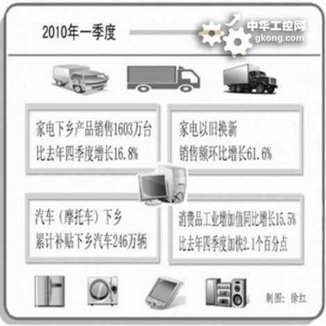 今年一季度,家電、汽車、摩mo托tuo車che下xia鄉xiang等deng一yi係xi列lie擴kuo大da消xiao費fei政zheng策ce作zuo用yong進jin一yi步bu顯xian現xian。工gong業ye和he信xin息xi化hua部bu公gong布bu的de數shu據ju顯xian示shi,由you於yu大da幅fu度du提ti高gao家jia電dian下xia鄉xiang產chan品pin最zui高gao限xian價jia,增zeng加jia品pin種zhong和he型xing號hao,一yi季ji度du家jia電dian下xia鄉xiang產chan品pin銷xiao售shou1603萬台,比去年四季度增長16.8%。家電“以舊換新”效果顯著,一季度家電以舊換新銷售額環比增長61.6%。小排量汽車購置稅按7.5%征收效果繼續顯現,1.6升及以下乘用車銷量352萬輛,占乘用車銷售量的70.5%;汽車(摩托車)下鄉執行效果良好,累計補貼下鄉汽車、摩托車246萬輛。