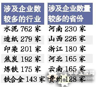 18個行業2010年淘汰落後產能共涉及企業2087家,其中涉及企業數較多的行業有:水泥762家,造紙279家,印染201家,焦炭192家,煉鐵175家,鐵合金143家,製革84家。從各省分解落實情況看,淘汰任務較重、涉及企業數量較多的省份有:河南230家,山西226家,浙江180家,河北165家,雲南165家,貴州128家。