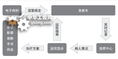 數shu字zi化hua急ji救jiu係xi統tong可ke以yi實shi現xian電dian子zi病bing曆li的de讀du取qu,把ba現xian場chang救jiu助zhu病bing人ren的de情qing況kuang實shi時shi記ji錄lu下xia來lai發fa送song給gei指zhi揮hui中zhong心xin,指zhi揮hui中zhong心xin把ba病bing人ren情qing況kuang再zai發fa送song給gei醫yi院yuan的de急ji診zhen科ke室shi,從cong而er使shi醫yi院yuan在zai遠yuan程cheng指zhi導dao急ji救jiu車che工gong作zuo的de同tong時shi,提ti前qian準zhun備bei治zhi療liao方fang案an。