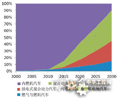 據此推測,中國汽車年銷量將在2020年達到4 000萬輛,其中PEV,PHEV及FCEV的新車年銷售占比達到10%,HEV的新車年銷售占比達到25%。