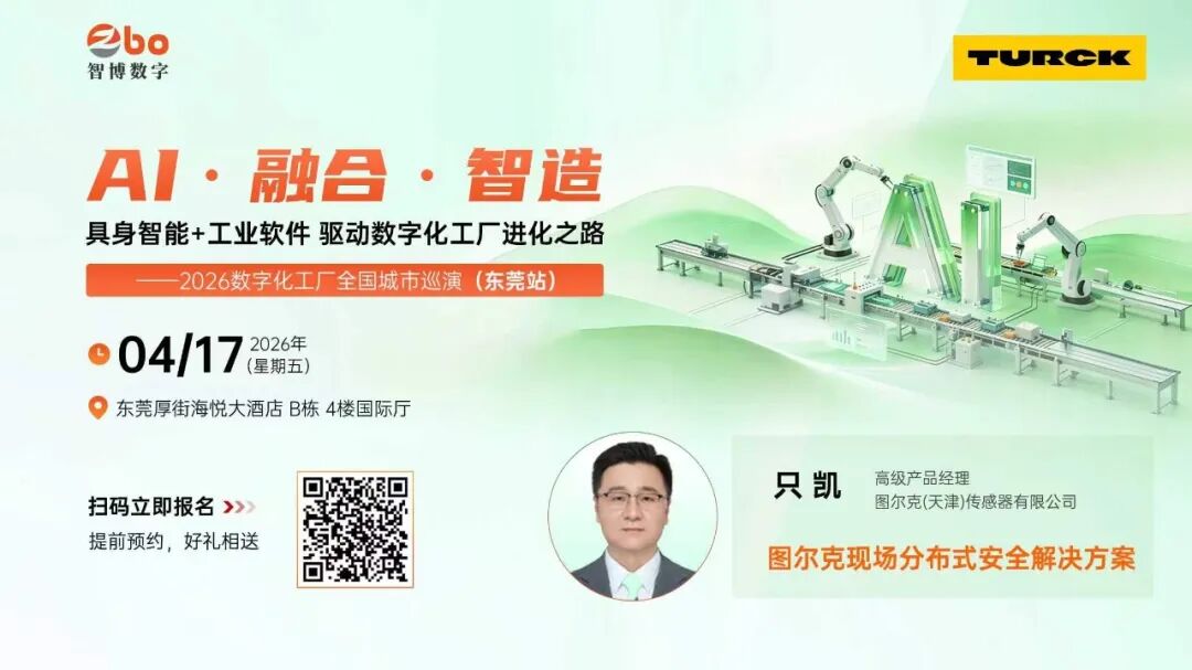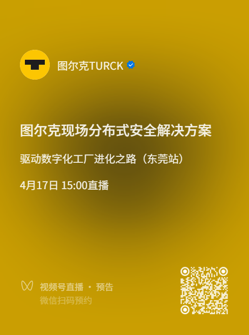 2026年4月17日,圖爾克將參與2026數字化工廠全國城市巡演(東莞站)論壇,當日15:00,圖爾克采用線上線下同步方式,為您深度解讀:圖爾克現場分布式安全解決方案的應用。歡迎掃碼預約直播!