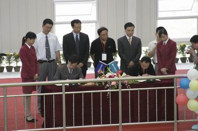 在昌平開發區利德華福剛剛興建好陽坊生產基地中,來自電力、冶金、石化、市政、政府及建築等行業的領導以及利德華福的200多名員工共同參加了本次 “三喜臨門”的慶典,慶祝利德華福成立6周年,突破高壓變頻器200台銷售大關,以及陽坊生產基地落成並投入使用。寬敞而又窗明幾淨的新廠房內,一派熱烈喜慶的歡樂氣氛。