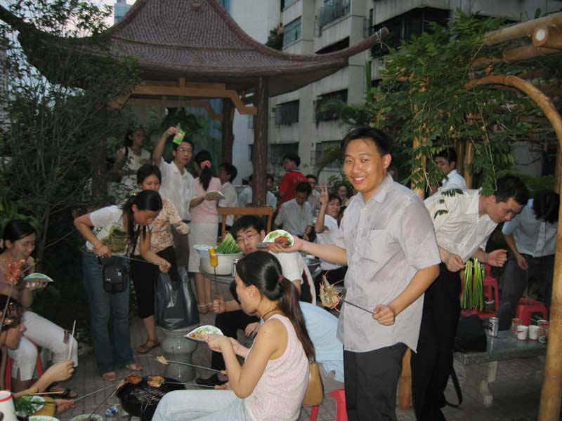 為了豐富員工的業餘生活,開闊員工的社交圈子,在配套公司辦公室的精心安排下,佛山市第一人民醫院、中國電信佛山分局與我公司的員工,於2004年6月25日晚在正大(集團)公司三樓的空中花園、四樓的多功能廳,進行了聯誼溝通活動。這次的聯誼活動形式多種多樣,有燒烤、卡拉OK、交誼舞等。大家一邊燒烤、唱歌,一邊天南海北地聊著。中國電信的朋友還穿插安排了一些精彩熱鬧的遊戲,把活動氣氛推向高潮。3個多小時很快就過去了,但許多朋友還不願離去,他們都衷心希望正大公司以後能多舉行這樣的聯誼活動。