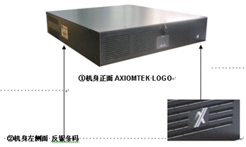 反銀條碼上,凡我公司機箱產品均以AX開頭,並以完整型號名出現。