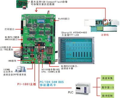 注塑機控製電腦項目是基於英康仕公司完全自主研發的PI-1861嵌入式主板和嵌入式COS實時多任務操作係統的基礎上研發完成的,包含以下重要技術研發內容: