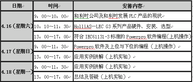 本期,我們對三天的課程進行調整,安排資深的教授、技術人員詳細講解最新的PLC技術及小型一體化PLC HOLLiAS-LEC G3,並通過對符合IEC61131-3標準軟件Powerpro,上位機與PLC的連接,PLC下位機控製設備等方麵的學習,進行上機編程實驗,並通過專題的講解,對上下遊產品進行實踐練習。