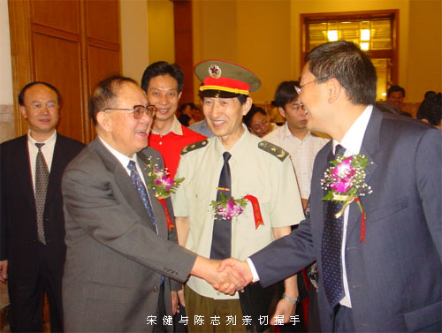 會議前半個小時的活動時間裏,研祥公司董事長陳誌列在貴賓廳受到全國政協副主席宋健、懷國模中將、胡永豐少將、呂剛少將等軍工界領導的親切接見並合影留念。
