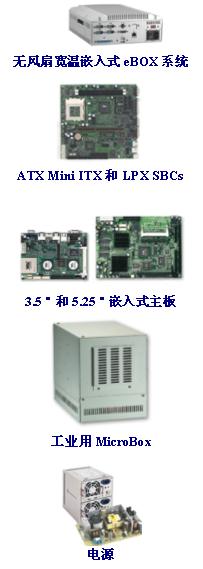 依據不同需求,生產不同尺寸的嵌入式主板, 3.5"、5.25"、Mini ITX、 LPX 或是 PC/104模塊, 還有 STX 模塊和底板。艾訊科技尚依嵌入式主板規格,設計係列嵌入式工業用機箱MicroBox及含主板在內的無風扇係統eBOX。艾訊科技的嵌入式產品一定備有合乎您計畫使用的工具,在製造、銷售、測試、測量、自動化辦公室、交通運輸、零售業、醫療健康、銀行業、娛樂業、消耗性儀器以及網路通訊市場等等行業中,已建立起廣大且多樣化的嵌入式產品線。