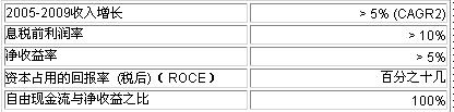 1 該新聞稿的附錄I對目標進行了解釋 2 從2005到2009年的五年複合年增長率(CAGR),不包含主要並購和剝離業務,並以穩定的彙率為假設前提