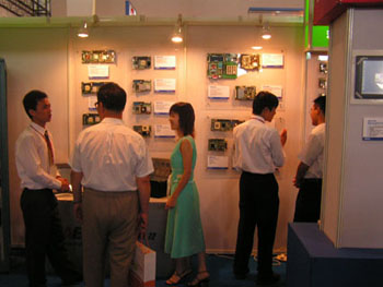 參加過今年六月上海IAC展會的觀眾一定對研揚科技工業係統產品線(ISD)的(de)新(xin)產(chan)品(pin)所(suo)展(zhan)現(xian)的(de)卓(zhuo)越(yue)性(xing)能(neng)還(hai)記(ji)憶(yi)猶(you)新(xin)。此(ci)次(ci)展(zhan)會(hui)上(shang),我(wo)們(men)同(tong)樣(yang)讓(rang)北(bei)方(fang)觀(guan)眾(zhong)也(ye)領(ling)略(lve)了(le)它(ta)們(men)的(de)風(feng)采(cai)。走(zou)近(jin)研(yan)揚(yang)的(de)展(zhan)位(wei),清(qing)新(xin)綠(lv)色(se)的(de)風(feng)格(ge)讓(rang)人(ren)如(ru)沐(mu)春(chun)風(feng)。直(zhi)接(jie)映(ying)入(ru)眼(yan)簾(lian)的(de)是(shi)板(ban)卡(ka)區(qu),陳(chen)列(lie)著(zhe)全(quan)長(chang)/半長CPU卡、防火牆、嵌入式單板等最新產品。支持Intel® Pentium® 4/ 賽揚D CPU的防火牆家族的新成員FWB-880也在其中。板卡區下方的展示台上擺放著幾款正在熱賣的機箱和平板電腦。其中,黑色的6 槽工業壁掛式機箱是AEC-206,小巧的結構和靈活的安裝設計都使它成為嚴苛的工業環境下的最佳選擇。展台旁邊巍然聳立的機櫃上,工作站、機箱、fanghuoqiangdengjingpinyiyingjuquan,rangrenmubuxiajie。weiyuzhanweizuoceqiangbidexianshiqishang,zhengzaibofangzheyanyangzuixindechanpinjieshaoxuanchuanpian,qudongtadejiushizhanhuidejiaodianBOXERS係列的新產品——AEC-6910。作為世界上第一台Pentium-M 2.0GHz嵌入式控製係統,AEC-6910憑借其靈活的擴展功能、緊湊的結構、無風扇設計及高效的熱傳導裝置,可完全勝任於工業自動化、工廠控製、測試儀表和安全監測等惡劣的技術應用環境。