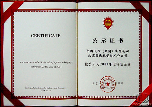 | 2004年北京市共有160個行業協會參與公示推薦,基本覆蓋了全市各個行業。各行業協會共向工商部門推薦企業3616戶,經工商部門複核,其中527戶企業因存在經營性虧損、欠稅、違法經營等問題未通過複核。市工商局對通過複核的3089戶企業名單分別在首都之窗、首都工商、千龍網站征求社會意見,開設了收集意見郵箱。最終,大恒圖像公司及其他共3086家企業符合守信企業標準,被公示為北京2004年度守信企業。目前工商局已將守信企業記入北京市企業信用信息係統。 |