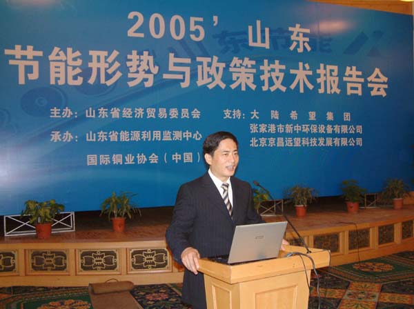 9月27日(ri),山(shan)東(dong)省(sheng)首(shou)屆(jie)節(jie)能(neng)形(xing)勢(shi)與(yu)政(zheng)策(ce)技(ji)術(shu)報(bao)告(gao)會(hui)在(zai)南(nan)郊(jiao)賓(bin)館(guan)隆(long)重(zhong)舉(ju)行(xing)。會(hui)議(yi)由(you)山(shan)東(dong)省(sheng)經(jing)貿(mao)委(wei)副(fu)主(zhu)任(ren)張(zhang)國(guo)敏(min)主(zhu)持(chi),來(lai)自(zi)國(guo)家(jia)發(fa)改(gai)委(wei)能(neng)源(yuan)研(yan)究(jiu)所(suo)的(de)領(ling)導(dao)、專家,山東省省直機關領導、17市節能行政主管部門負責人和重點用能企業領導300餘(yu)人(ren)參(can)加(jia)了(le)報(bao)告(gao)會(hui)。作(zuo)為(wei)國(guo)內(nei)最(zui)具(ju)影(ying)響(xiang)的(de)節(jie)能(neng)技(ji)術(shu)服(fu)務(wu)商(shang),大(da)陸(lu)希(xi)望(wang)集(ji)團(tuan)總(zong)裁(cai)陳(chen)斌(bin)博(bo)士(shi)應(ying)邀(yao)出(chu)席(xi),並(bing)就(jiu)希(xi)望(wang)集(ji)團(tuan)高(gao)科(ke)技(ji)節(jie)能(neng)技(ji)術(shu)及(ji)產(chan)品(pin)作(zuo)專(zhuan)題(ti)報(bao)告(gao)。