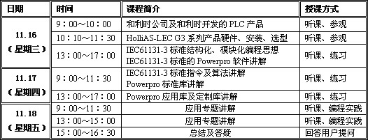 11月16日~18日,和利時公司PLC事業部將在杭州和利時大廈,舉辦第13期小型一體化PLC免費培訓班。