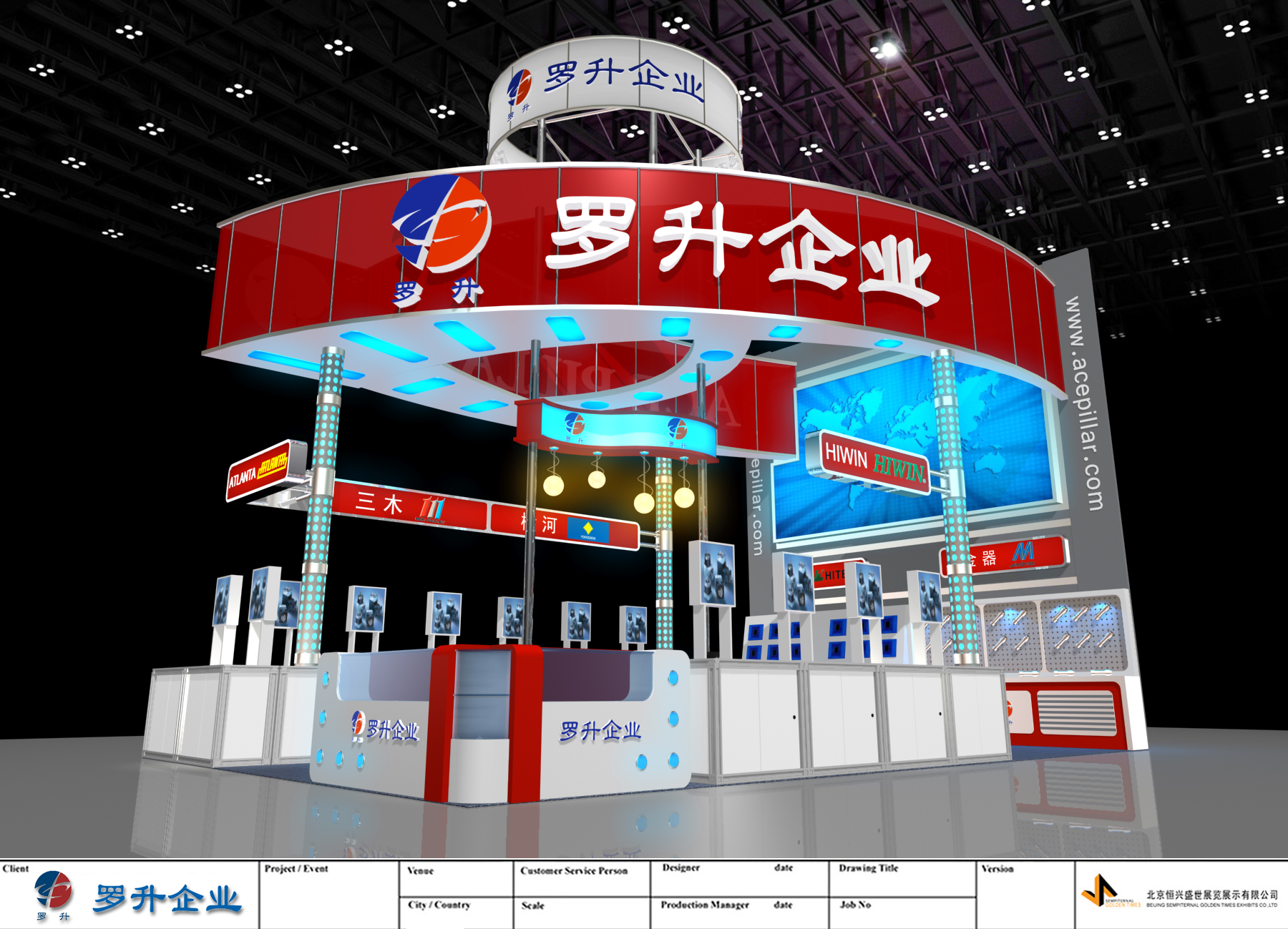 羅升的展台主體顏色將繼續突出紅色,因為羅升公司是一個朝氣蓬勃,活力四射的創新型公司,在紅色中也仍然有穩重、踏實、成熟的蘭色。這些顏色體現了羅升公司的麵貌和本質。